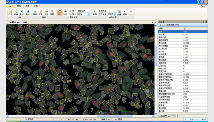 5、可大批量自動(dòng)分析處理與輸出結(jié)果。與國(guó)標(biāo)GB/T1350稻谷、GB/T17891優(yōu)質(zhì)稻谷或GB1354-2018大米、農(nóng)業(yè)部新標(biāo)準(zhǔn)【大米】NY/T2334-2013、大米粒型分類(lèi)判定LS/T6116-2016、糧食行業(yè)標(biāo)準(zhǔn) 大米LS/T 3247—2017、GB/T 35881-2018糧油檢驗(yàn) 稻谷黃粒米含量測(cè)定圖像分析法等標(biāo)準(zhǔn)相對(duì)應(yīng),檢測(cè)各項(xiàng)指標(biāo)的質(zhì)量比和粒數(shù)比。