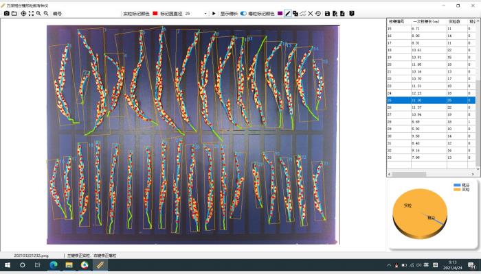 4、★鼠標(biāo)點(diǎn)擊確定對應(yīng)枝梗上的秕谷粒后,自動(dòng)算出各枝梗結(jié)實(shí)率及總結(jié)實(shí)率。