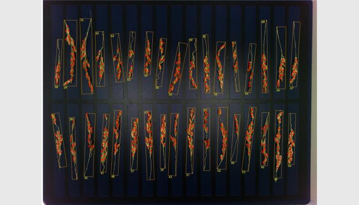 2、★一鍵化自動(dòng)分析獲得谷穗的一級(jí)枝梗及對應(yīng)一級(jí)枝梗下的二級(jí)枝梗的各枝梗長、對應(yīng)各級(jí)穗粒數(shù)、著粒密度及各平均值等。