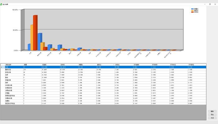 (6)可分析統(tǒng)計(jì)每類浮游動(dòng)物的數(shù)量、面積、體積、及其占比;對(duì)各分類進(jìn)行排序及柱狀圖顯示占比情況。