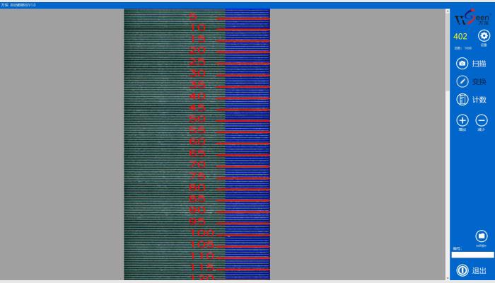 正對各類整齊堆疊的鋼板、鋁板、銅板等金屬板、塑料板、PCB線路板、硬紙板等,點【掃描】成像;再點【計數】獲得自動數板結果,觸屏可快速核實100%數板正確;若出現極個別的誤判,可點【+】/【-】按鈕來快速修正,確保數板結果100%正確。